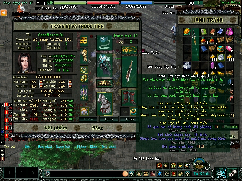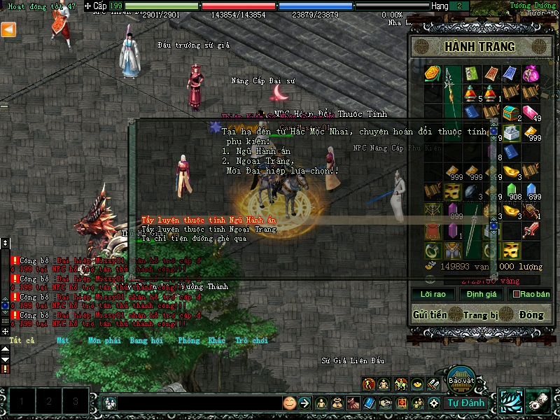 - Quý vị anh hùng đến Trung Tâm Tương Dương gặp NPC Tẩy Luyện Thuộc Tính (199/201) và chọn trang bị cần tẩy luyện: